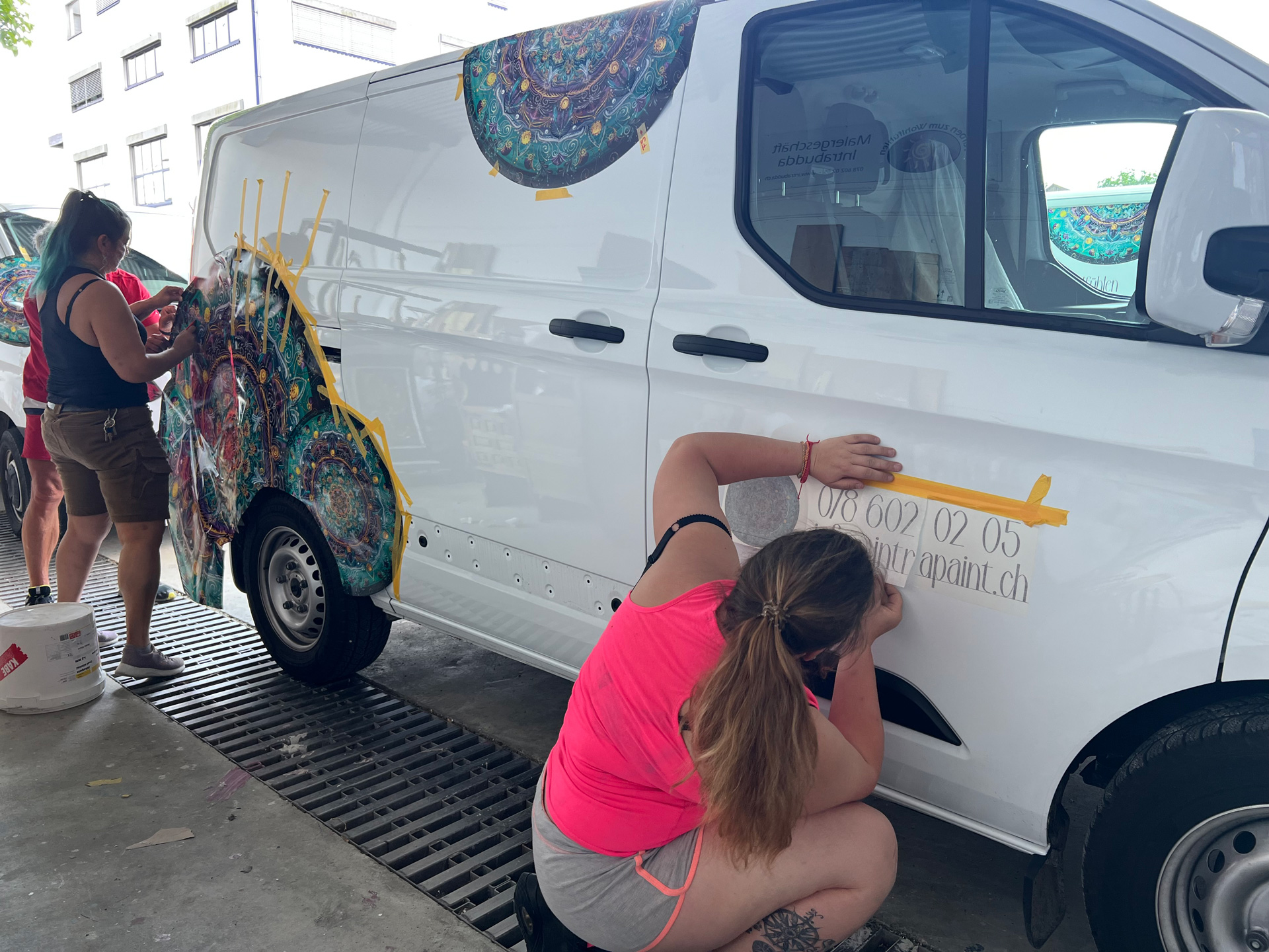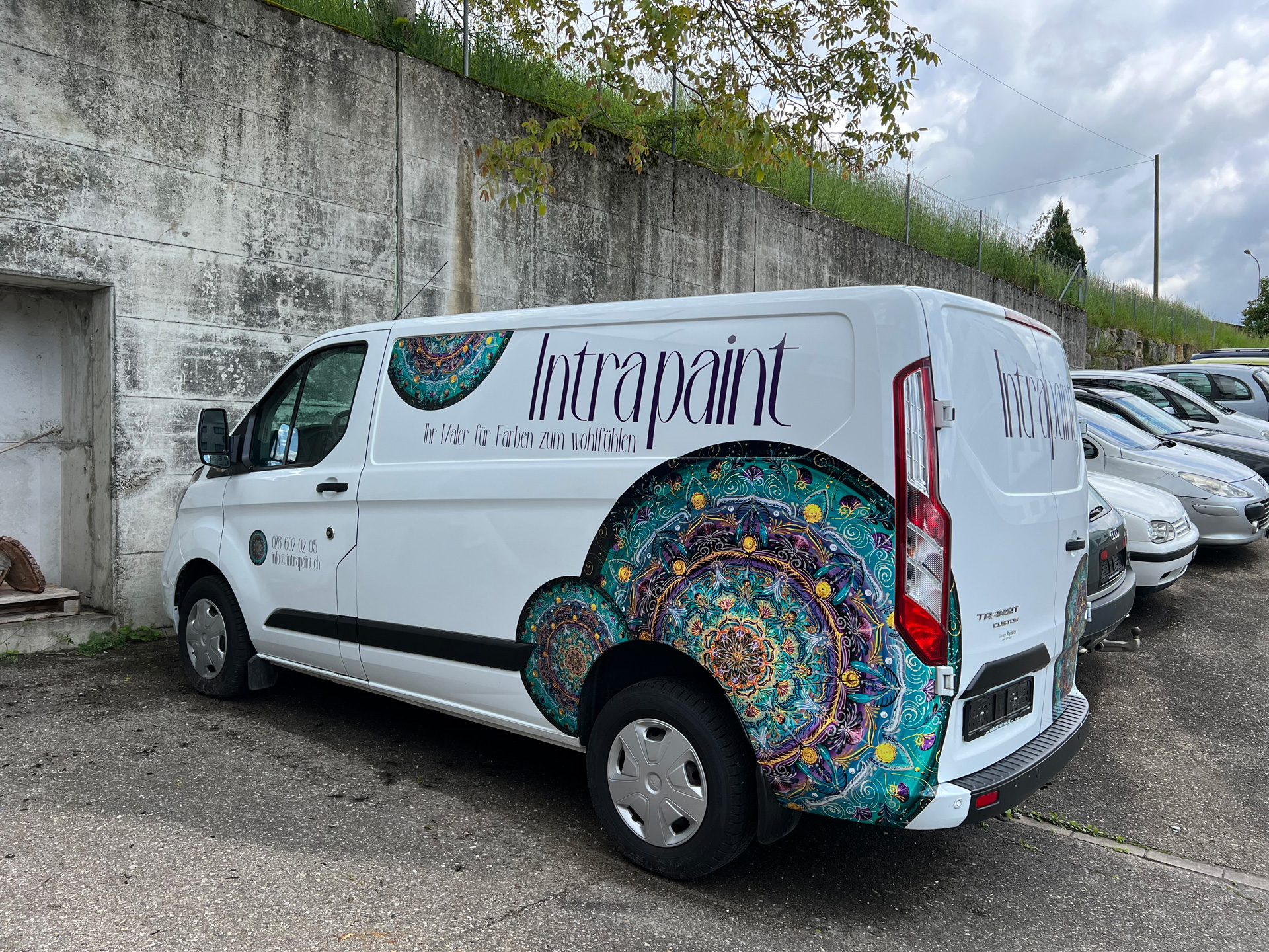 Wir haben unsere Autos mit dem neuen Logo beschriftet.