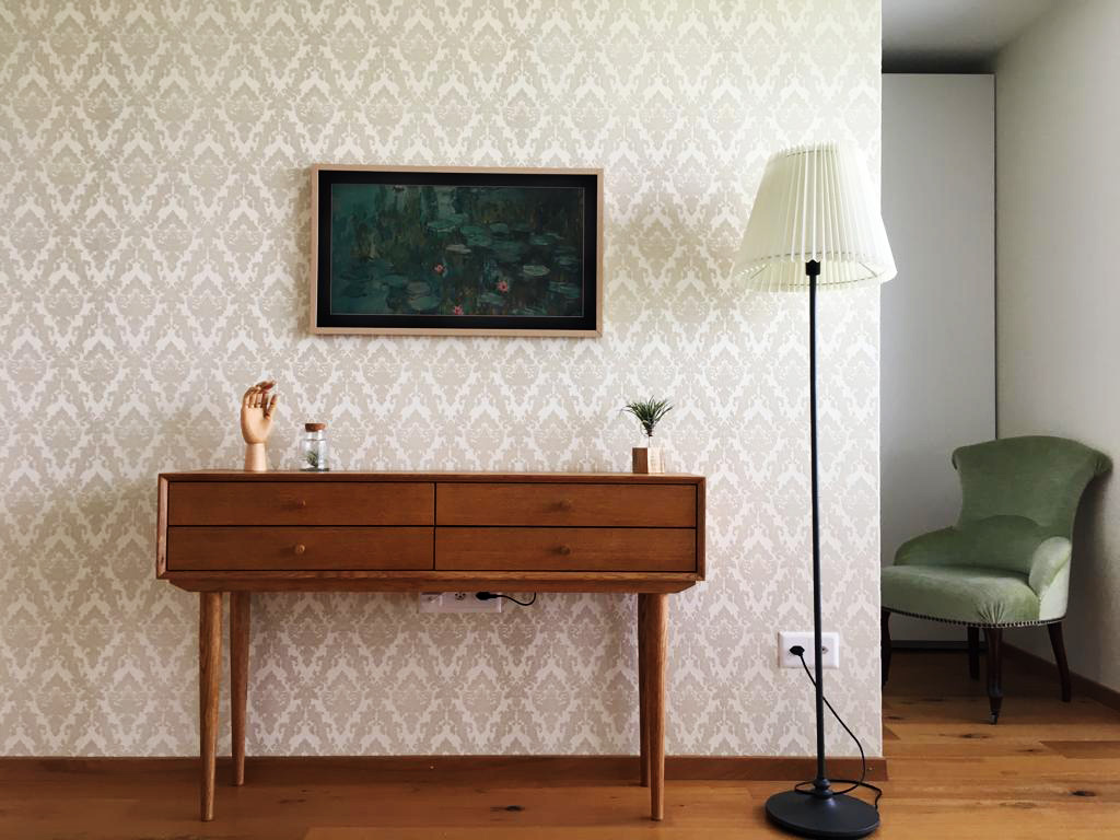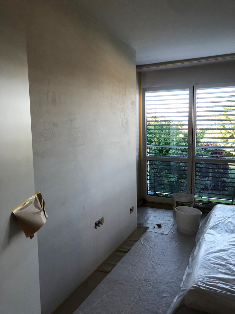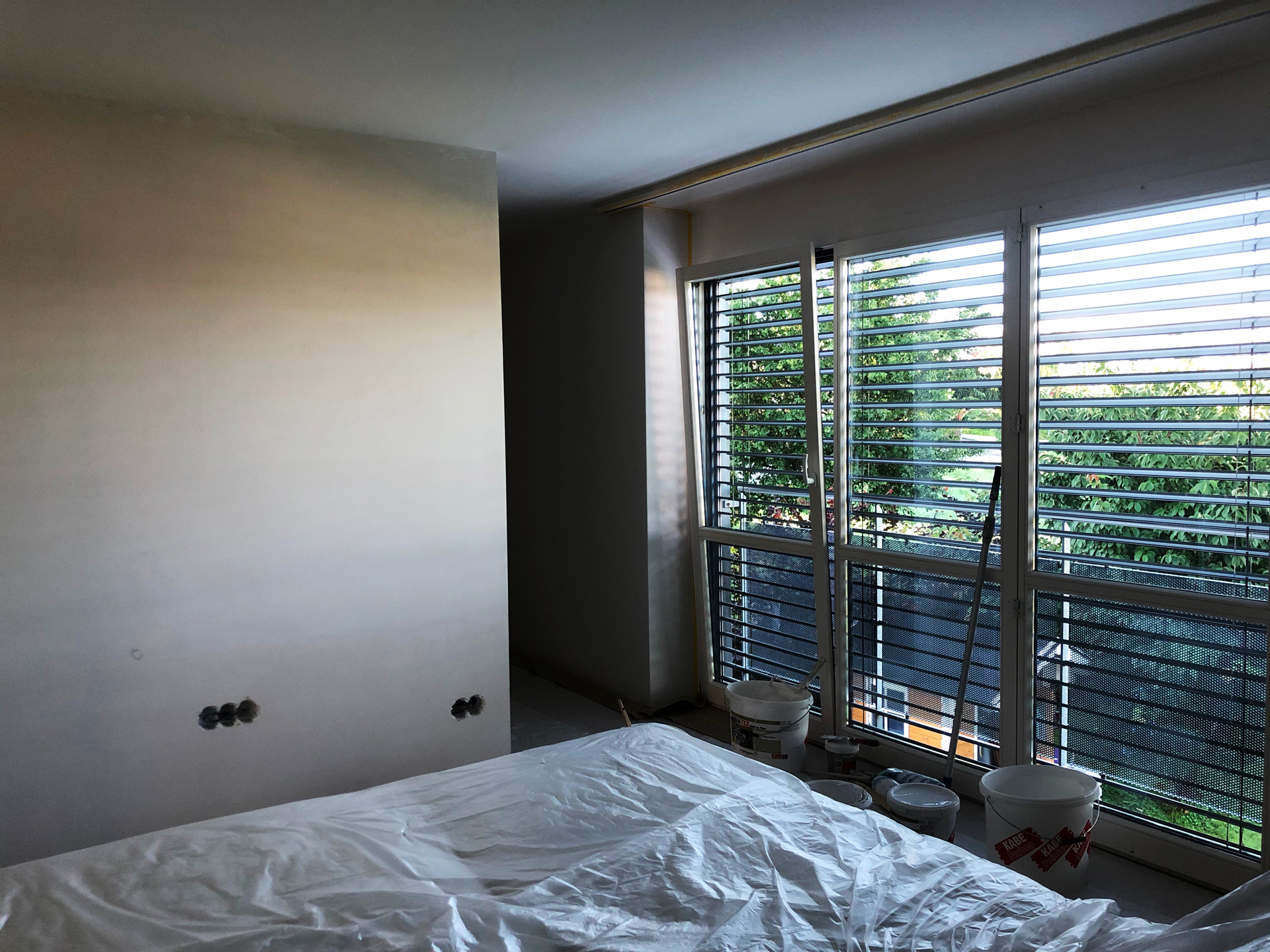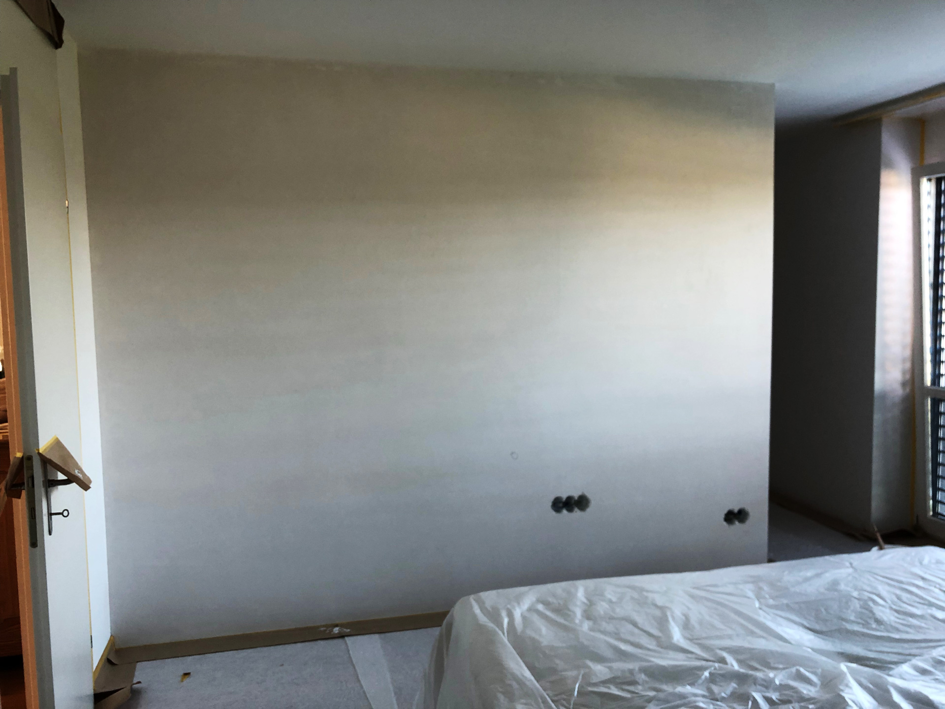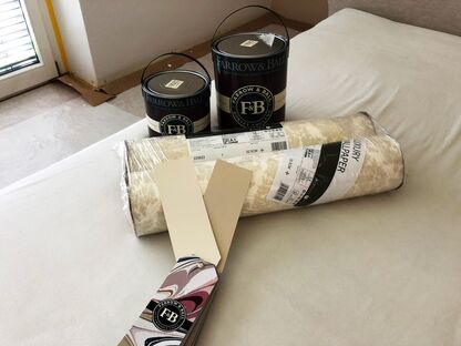 Umgestaltung eines Schlafzimmers. Farbberatung mit F&B Farben und Tapete von Wirz