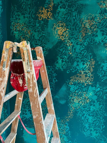 Dekorative Wandgestaltung mit Calze Cruda und Gold Ornamente